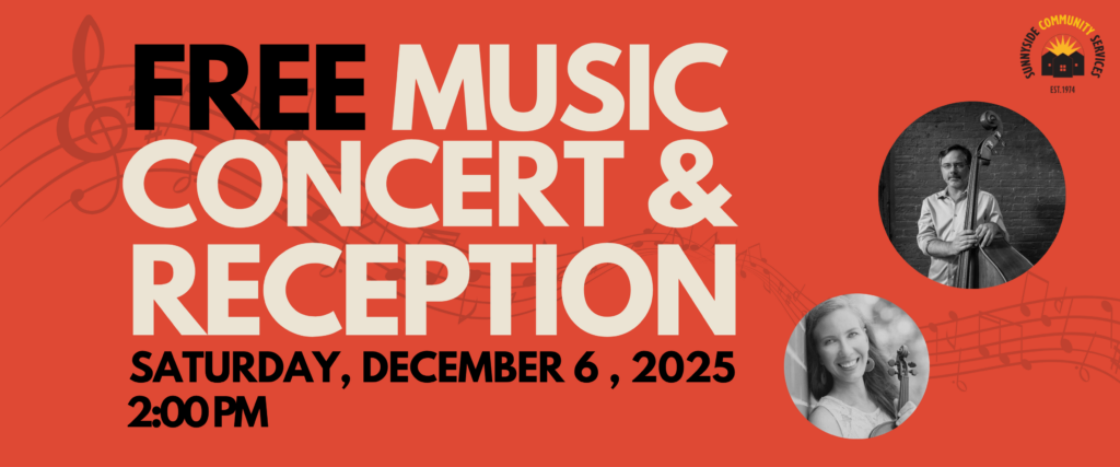 Sunnyside Community Services invites you to a holiday gathering and concert. Join members of the SCS Board of Directors and staff for drinks, lite bites, and great conversation.