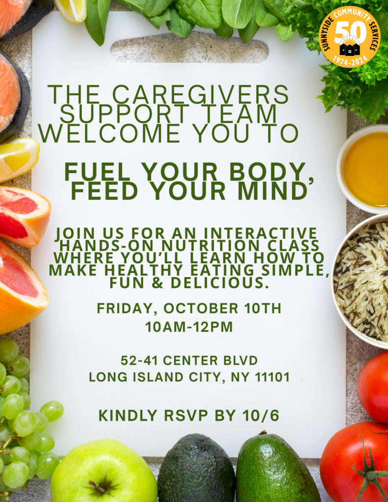 The caregiver support team invites you to join us for an interactive hands-on nutrition class. Participants will learn how to make healthy eating simple fun and delicious. Please use the form to secure your spot.