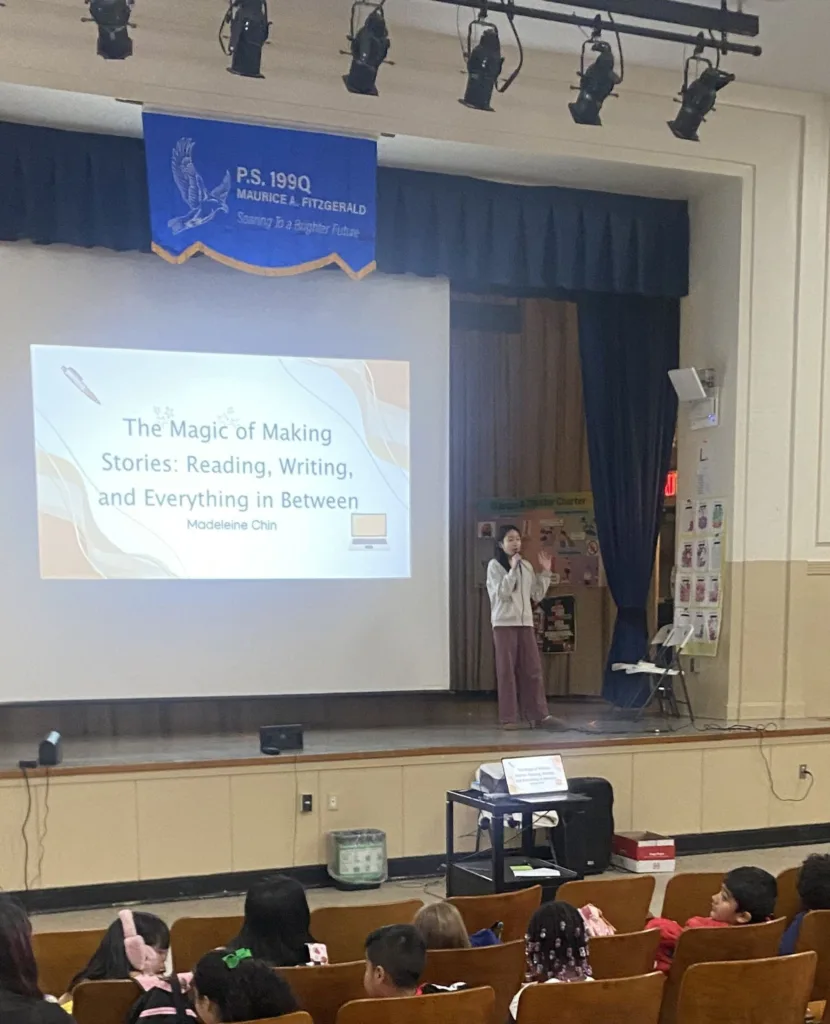 Young author and Mindful Reading founder Madeleine Chin recently visited our afterschool program at P.S. 199Q in Sunnyside, where she inspired students with her story and love of reading and writing. She spoke about her journey as a young writer, answered questions, and encouraged students to find their own voice through reading and creativity. Each child had the opportunity to select three donated books to take home, helping to spark a lifelong love of reading.